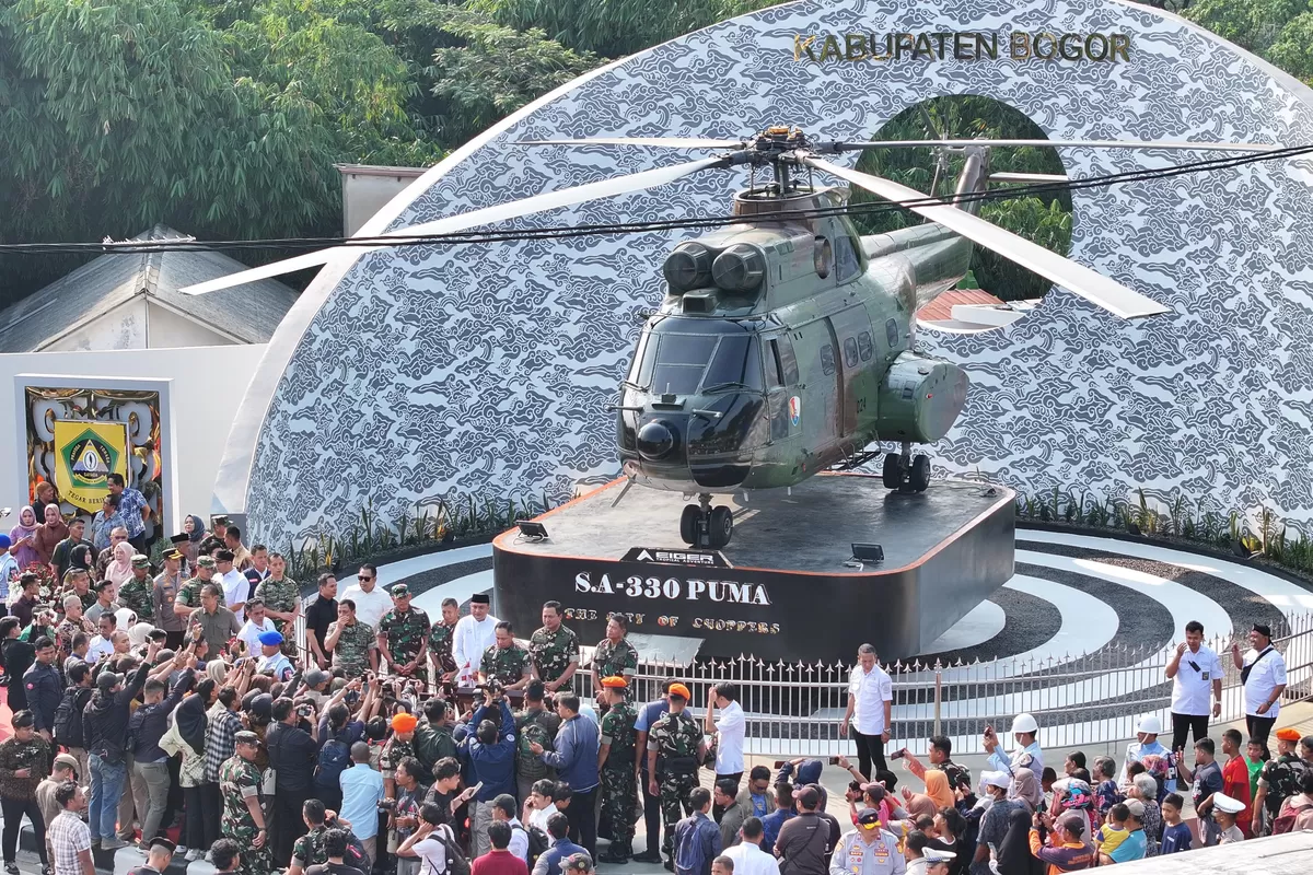EventBogor.com – Di tengah hiruk pikuk lalu lintas Simpang Sentul, kini berdiri kokoh sebuah monumen yang mengukir sejarah. Bukan sembarang tugu, melainkan replika Helikopter S.A-330 PUMA, simbol pengabdian 45 tahun menjaga kedaulatan Negara Kesatuan Republik Indonesia. Peresmian monumen ini, yang dihadiri langsung oleh Bupati Bogor Rudy Susmanto dan Panglima TNI Jenderal TNI Agus Subiyanto, bukan hanya sekadar seremoni, melainkan sebuah penghormatan mendalam.