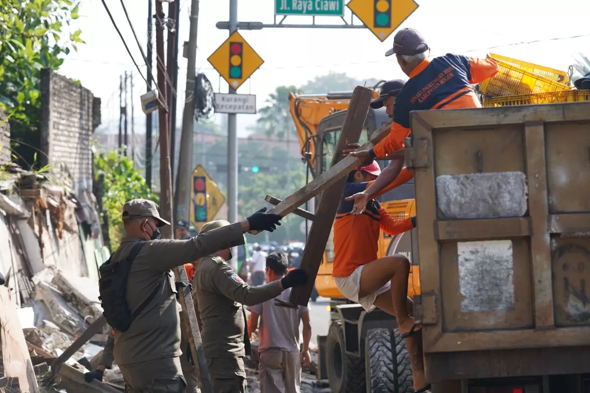 EventBogor.com – Kabar tak sedap bagi para pemilik bangunan liar di sepanjang Jalan Raya Sukaraja-Sukabumi, Ciawi. Selasa (01/07/2025), Satpol PP Kabupaten Bogor membongkar habis 130 bangunan tak berizin yang berdiri di bahu jalan. Dari lapak pedagang kaki lima hingga bangunan semi permanen, semua rata dengan tanah. Langkah tegas ini diambil demi menegakkan Peraturan Daerah (Perda) Kabupaten Bogor Nomor 4 Tahun 2015 tentang Ketertiban Umum.